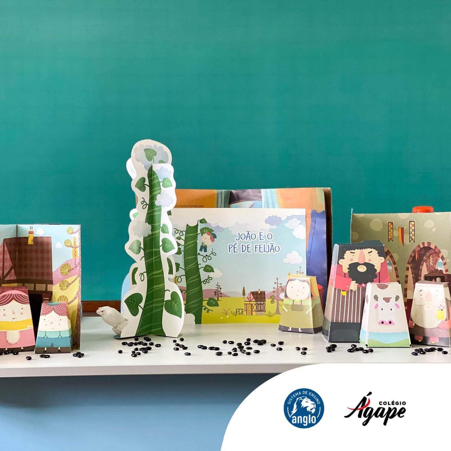 Aqui na escola todo dia é dia do livro. Montamos um cenário especialmente para a nossa atividade sobre o livro João e o pé de feijão, colorimos o castelo do gigante, ouvimos a história e pra finalizar plantamos nossos próprios pés de feijão. Livros nos permitem aprender assim, de um jeito lúdico e divertido.