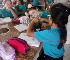 Os alunos do 3 ano do Ensino Fundamental I, aprenderam com a turma do Luan, a respeito da transpiração vegetal e o ciclo da água. Thereza ajudou os alunos a relacionarem o ar seco a pouca quantidade de vapor e o ar úmido a grande quantidade de vapor da água, Edgar também citou a relação entre umidade do ar e a sensação térmica em ambientes diferentes. Além de descobrirem, que é pelas folhas, que a planta perde grande quantia de água, indo para a atmosfera em forma de vapor. Depois de todas essas informações, a turminha se divertiu, colocando em prática, todos estes conhecimentos. E o resultado só podia ser uma aprendizagem incrível!